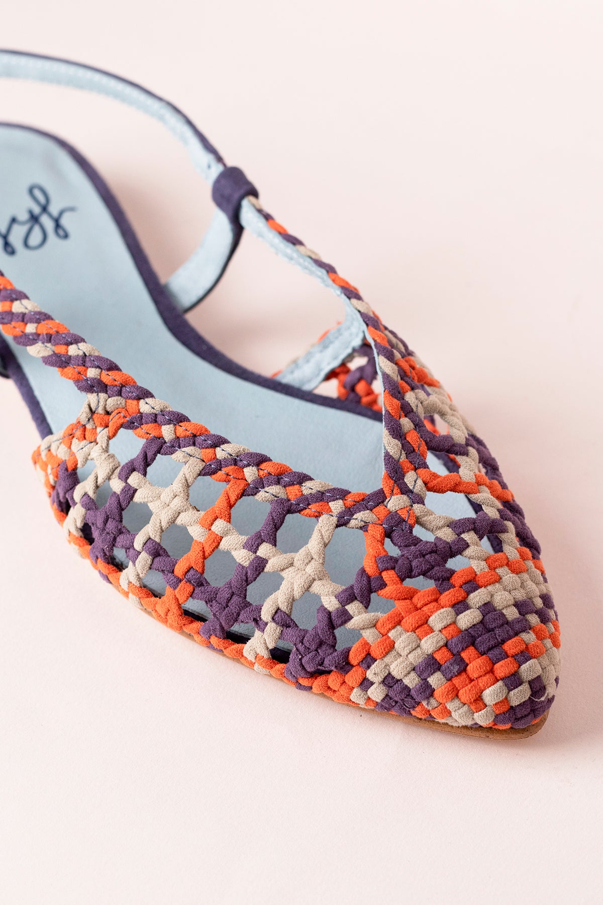 Bailarinas destalonada con tejido de algodón trenzado a mano formando una pieza geométrica. Un diseño clásico y muy confortable, que se adapta a diferentes estilos.
