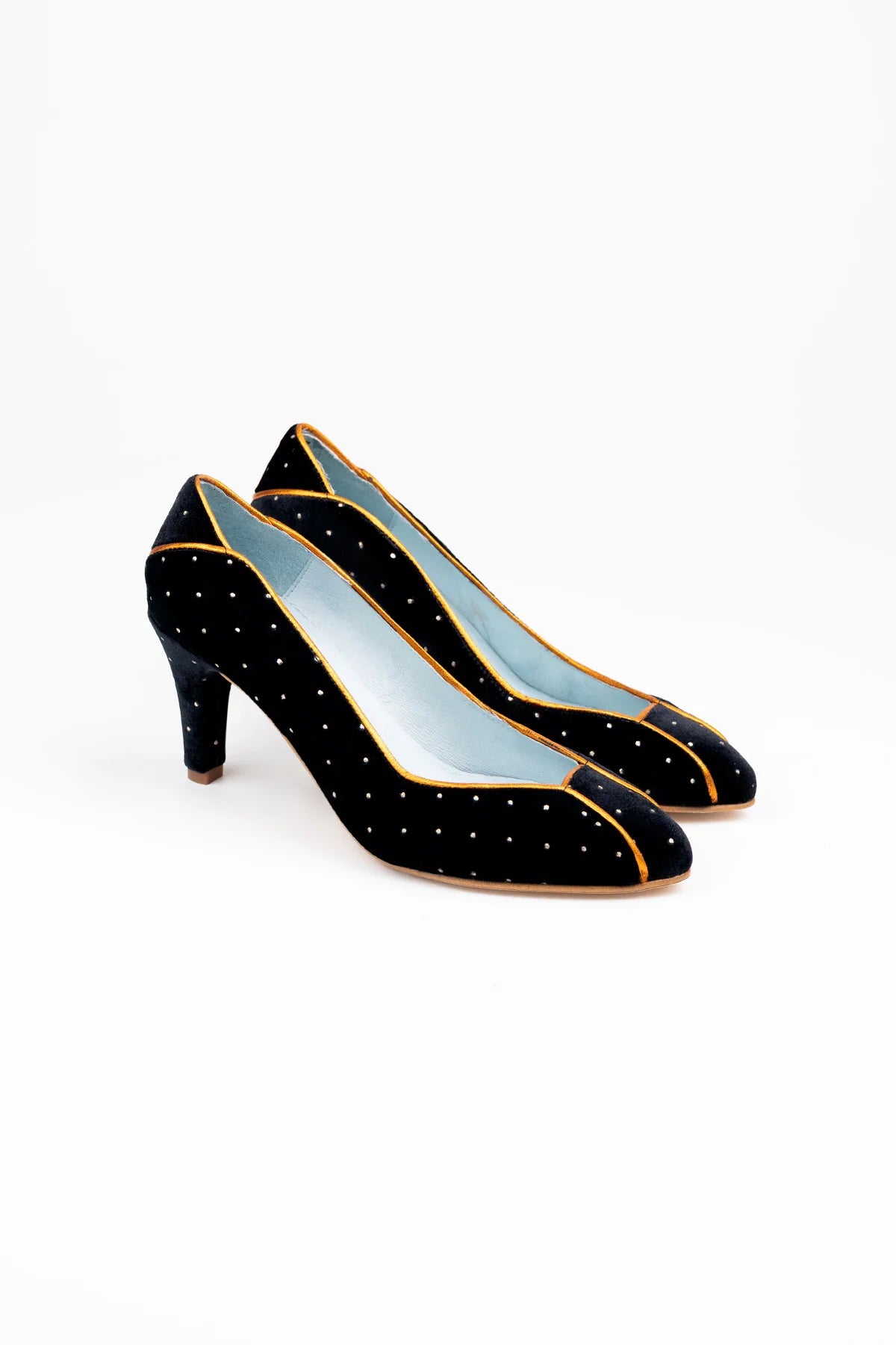 Zapatos de tacón de línea clásica, diseñados y producidos de forma artesanal 100% en España. Están elaborados con materias primas de alta calidad, seleccionadas al detalle.